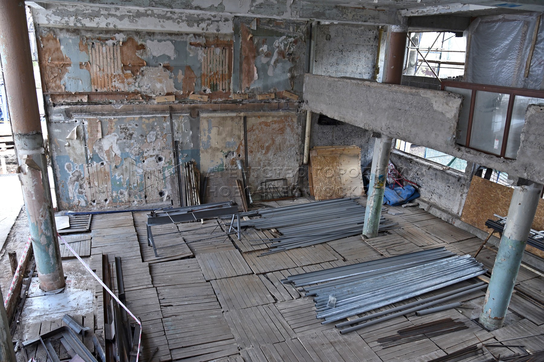 Власти дали объяснение: проводится комплексная реставрация. Мол, внутренние перекрытия обветшали, поэтому необходимо разобрать всё, кроме фасада, и построить заново. Для убедительности вокруг стройки установили информационные щиты с соответствующими надписями.